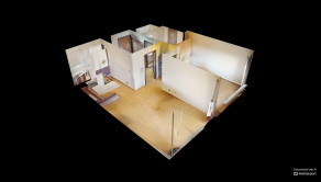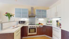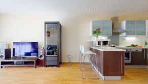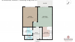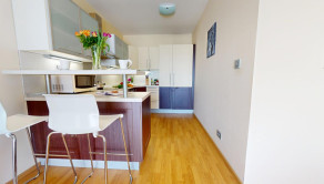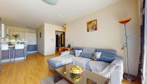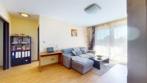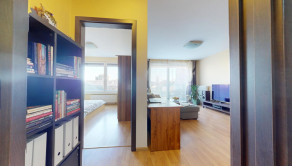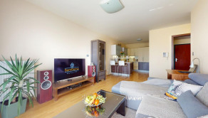 Byt má priestrannú obývačku spojenú s kuchyňou a veľkú samostatnú spálňu.