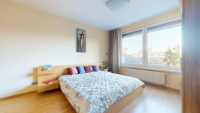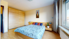 Francúzke okná s východom na balkón a nadrozmerné okná v spálni, zabezpečia dostatok denného svetla. Okná majú vonkajšie elektrické žalúzie.