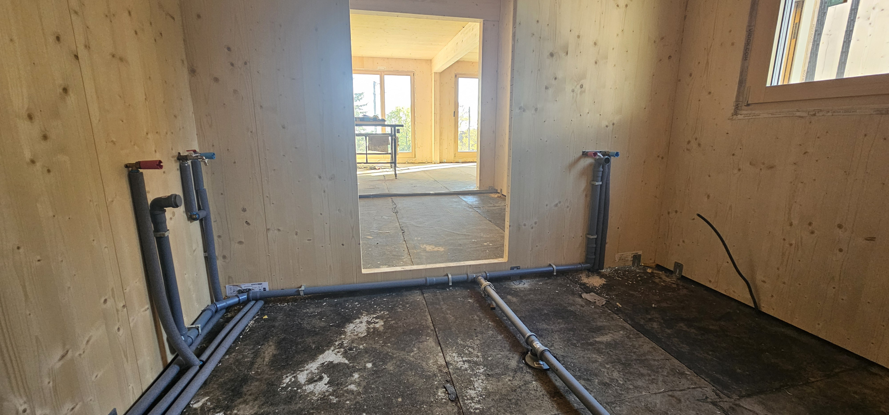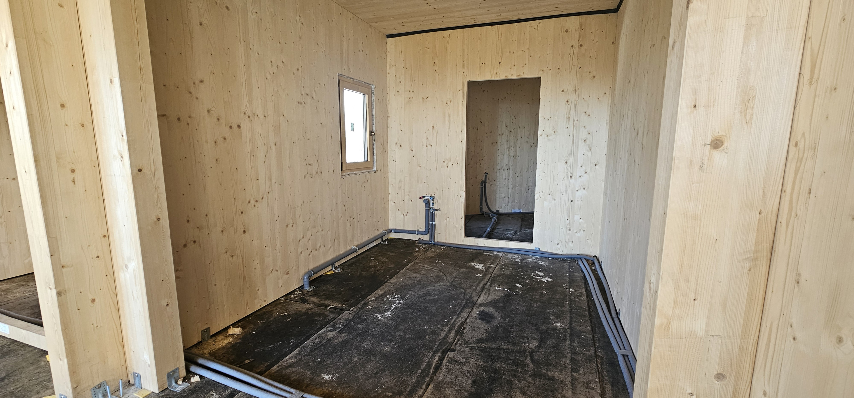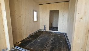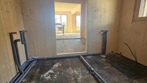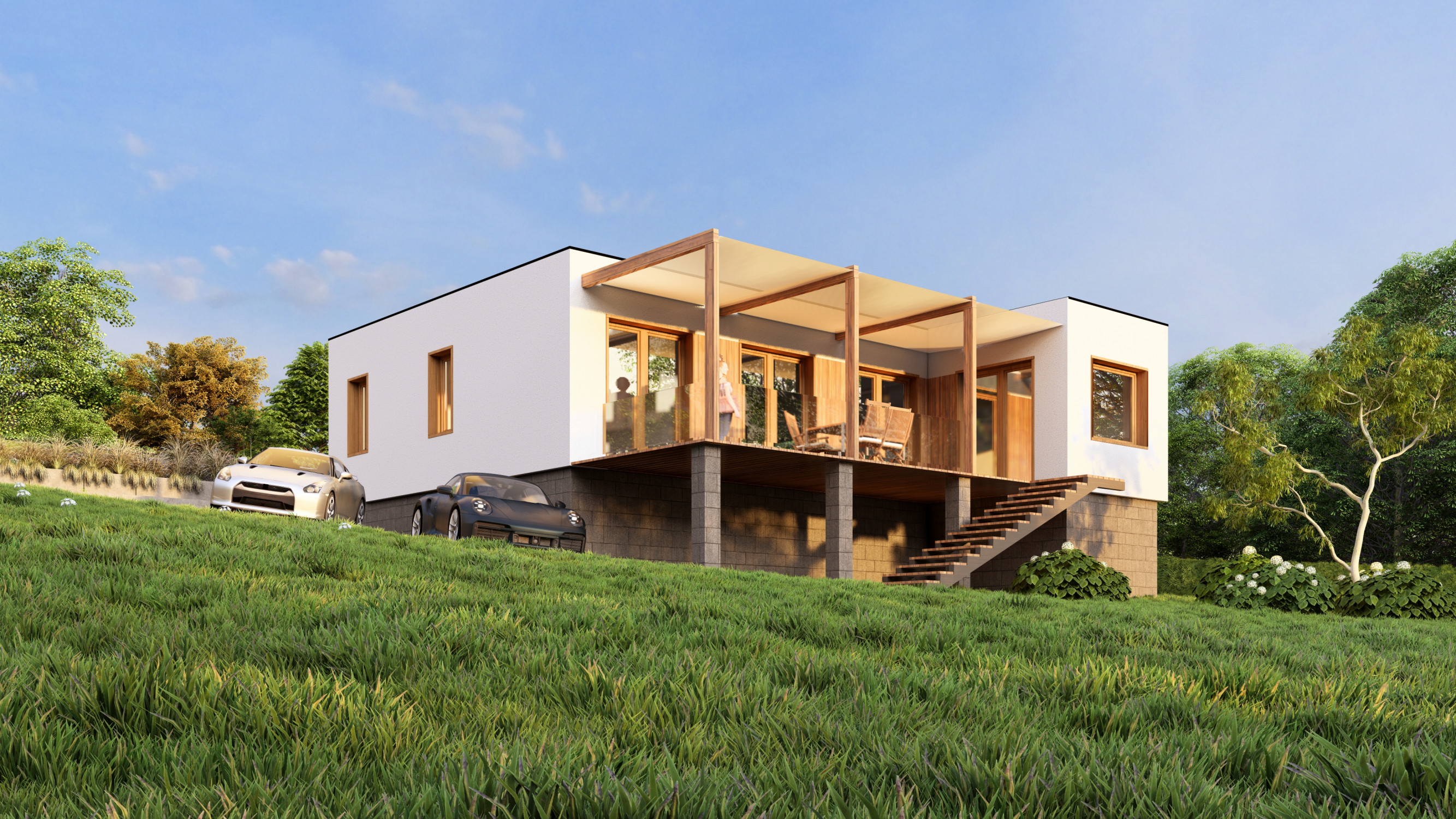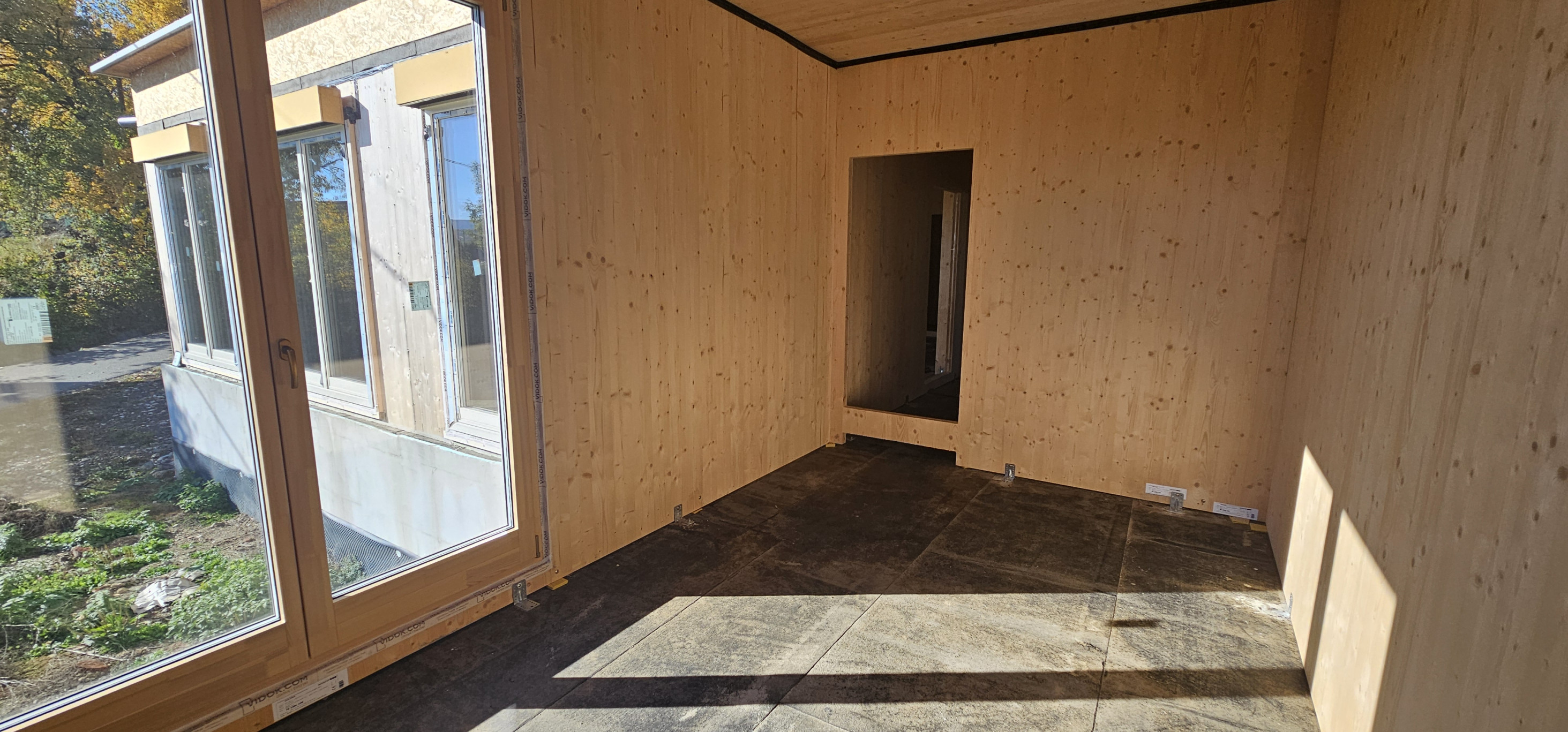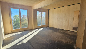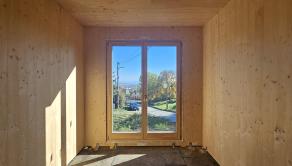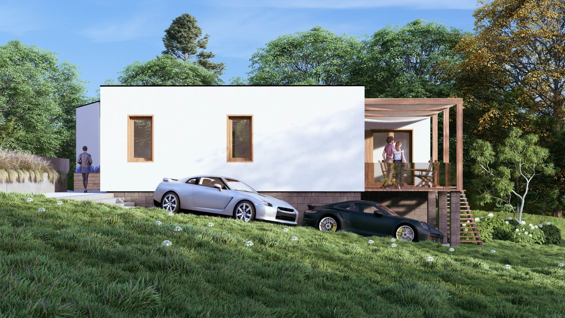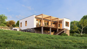 Stavba je v štádiu uzavretej hrubej stavby s rovnou strechou, ktorá je izolovaná minerálnou vlnou, 3 komorovými drevohliníkovými oknami, kanalyzačnými a vodovodnými rozvodmi. Celkové dokončenie je rýchle, nakoľko sa vynechávajú mokré procesy. Náklady na dokončenie sa budú odvíjať od Vašej náročnosti na materiály a či si dokončenie realizujete svojpomocne. Tohtoročné Vianoce môžete prežiť v novom dome.