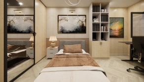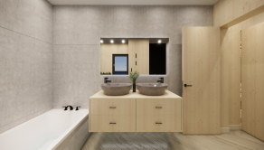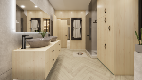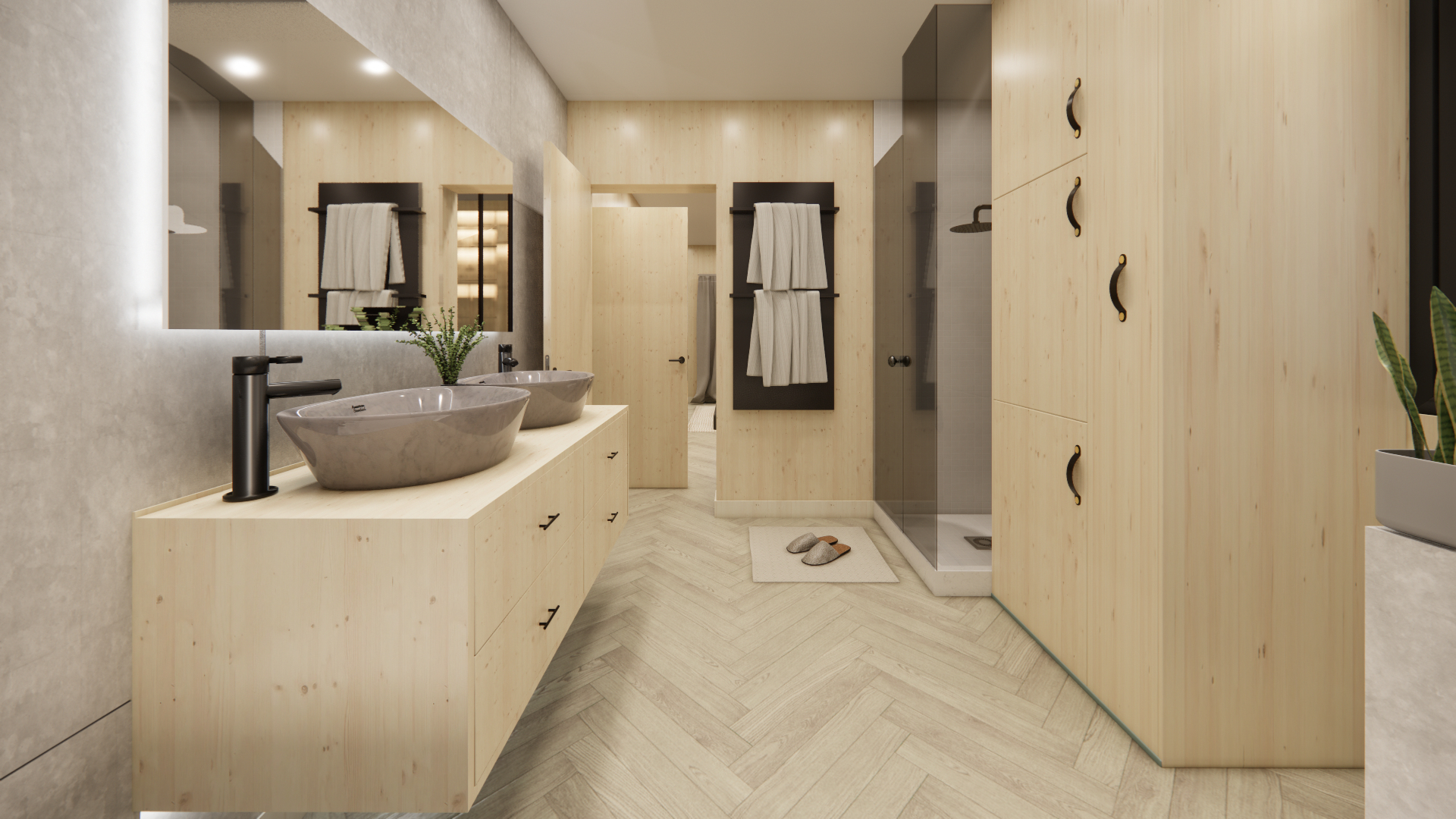 Rodičia ocenia šatník a vlastnú kúpeľňu so sprchovacím kútom, vaňou a 2 umývadlá.