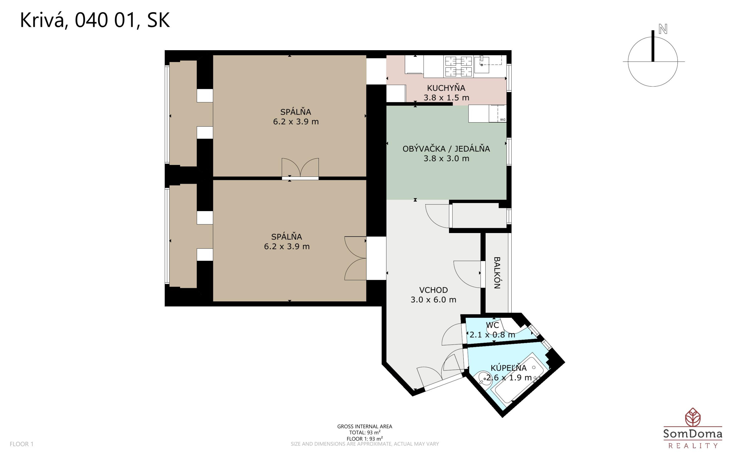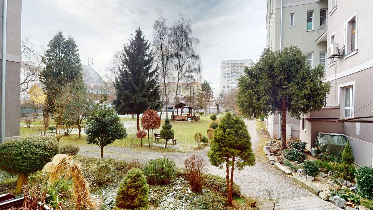🌿 Balkón je orientovaný do pokojného zeleného vnútrobloku, ktorý poskytuje ticho aj napriek polohe blízko centra mesta.